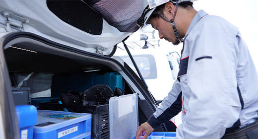 私たちは地域の電気設備工事を手がけて50年。中でも道路照明灯の設置をはじめ、インフラ整備を通して人々の暮らしの安全を支えてきました。